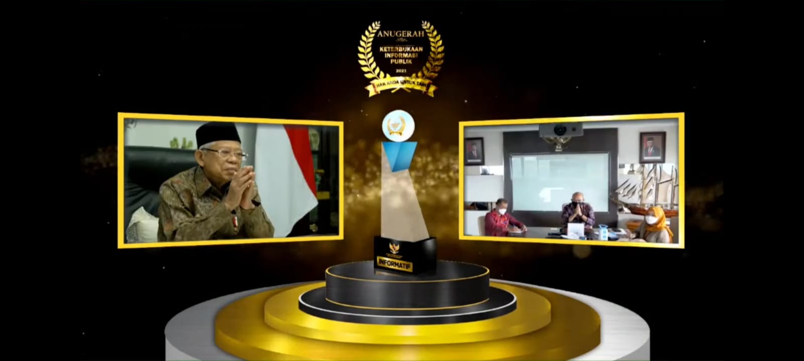 Saat memberikan sambutan pada acara penganugerahan, Wakil Presiden RI KH Ma’ruf Amin mendorong agar Komisi Informasi Pusat terus berkolaborasi bersama pemerintah untuk terus mengawal pelaksanaan Keterbukaan Informasi Publik di tanah air. Wapres mengatakan Keterbukaan Informasi Publiik harus tetap dilakukan untuk meningkatkan partisipasi masyarakat dalam pengelolaan pemerintahan yang transparan meski dalam masa pandemi Covid-19.