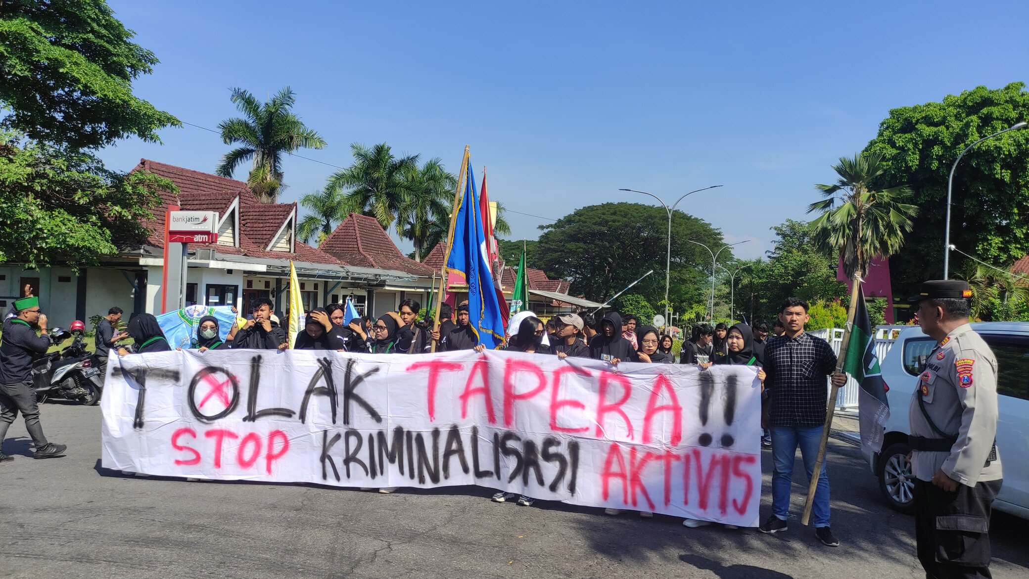 Aliansi Pemuda Lumajang Bergerak gelar Aksi di depan Kantor DPRD Kabupaten Lumajang. Aksi yang terdiri dari HMI Lumajang, GMNI Lumajang, BEM ITB WIGA, BEM UNILU, BEM STIH, dan PII dengan membawa dua tuntutan. Tolak kebijakan Tabungan Perumahan Rakyat (Tapera) dan hentikan kriminalisasi aktivis, Rabu (12/06).