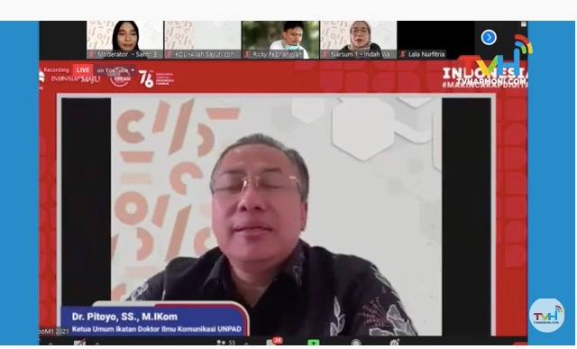 Dr Pitoyo, SS, M.IKom menyampaikan pesan tersebut pada webinar yang diselenggarakan oleh Kominfo dan Siberkreasi pada acara Gerakan Nasional Literasi Digital 2021, Kabupaten Way Kanan, Provinsi Lampung (28/8). Mengangkat tema “Literasi Digital Dalam Meningkatkan Wawasan Kebangsaan” acara ini di awali dengan Pidato Presiden RI Ir Joko Widodo, dan menyanyikan lagu Indonesia Raya.