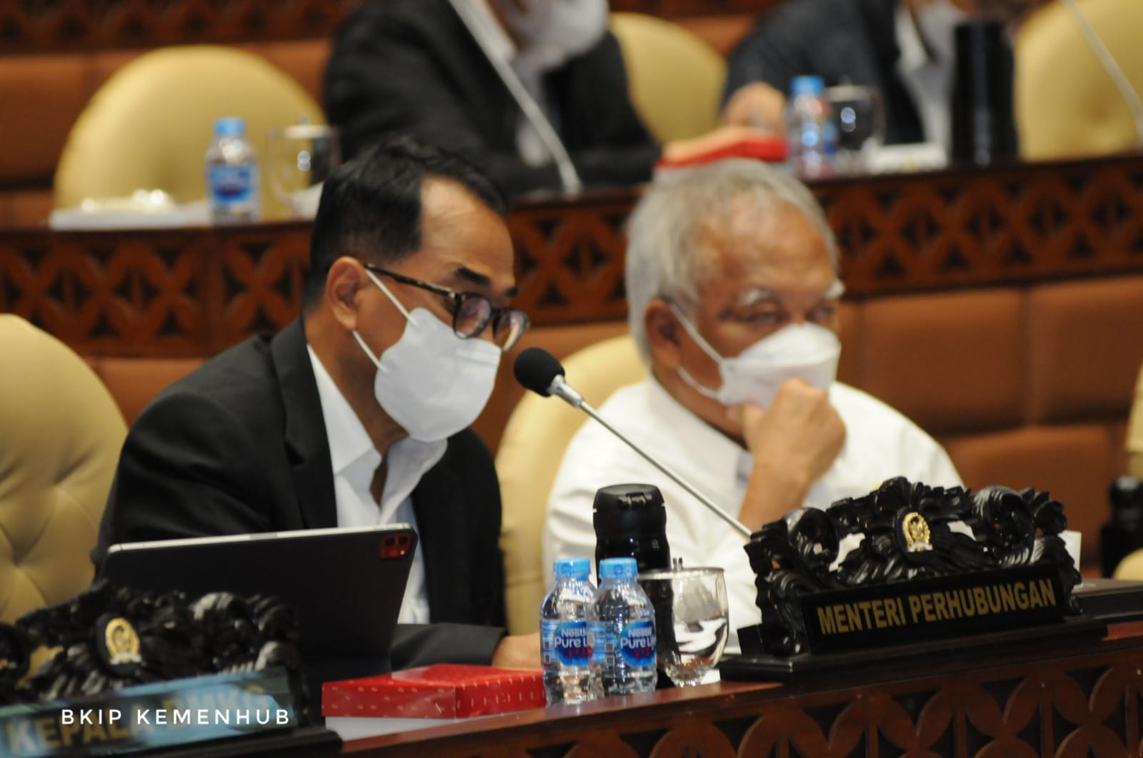 Turut hadir dalam rapat kerja di DPR yaitu Menteri PUPR Basuki Hadimuljono, Kakorlantas Polri Irjen Pol Firman Santyabudi, Kepala Basarnas Marsekal Madya TNI Henri Alfiandi dan Perwakilan BMKG.