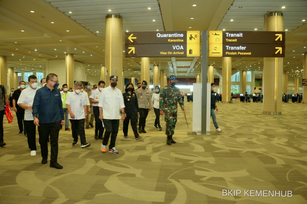Menhub mengapresiasi upaya serius dan kekompakan yang dilakukan oleh AP I, Kantor Kesehatan Pelabuhan (KKP), Imigrasi, TNI/Polri untuk melakukan penanganan penumpang kedatangan internasional di Bandara Ngurah Rai, Bali.