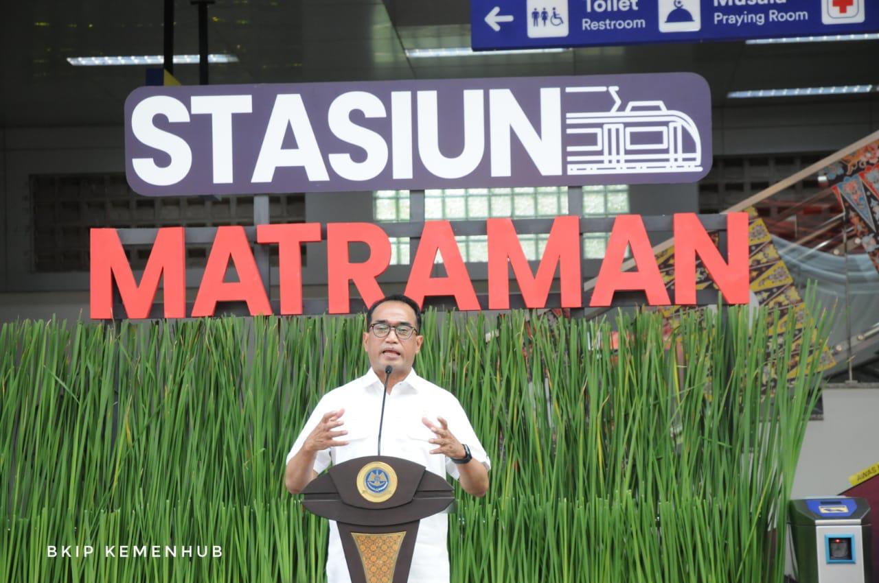 Menteri Perhubungan Budi Karya Sumadi bersama Menteri Koperasi dan Usaha Kecil dan Menengah Teten Masduki, Minggu (19/6) menghadiri soft launching pengoperasian Stasiun Matraman, Jakarta Timur. Pembangunan stasiun ini merupakan bagian dari upaya peningkatan layanan angkutan massal KRL Jabodetabek.