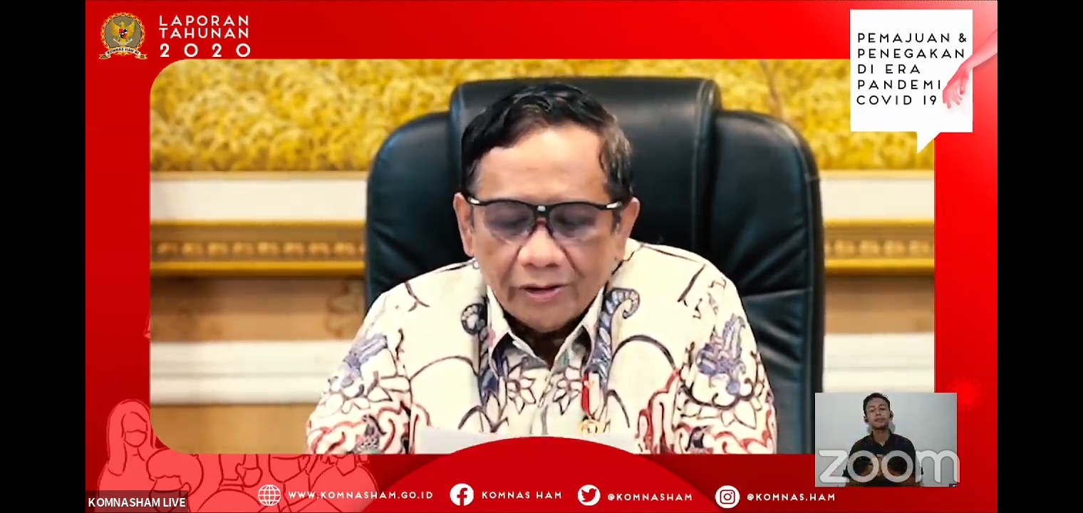 Menteri Koordinator Bidang Politik, Hukum dan keamanan (Menko Polhukam) Mahfud MD mengajak semua elemen baik pemerintah maupun masyarakat untuk memperkuat posisi Komisi Nasional Hak Asasi Manusia (Komnas HAM). Hal ini ditegaskannya saat sambutan dalam Peluncuran Laporan Tahunan Komnas HAM Tahun 2020, Kamis (12/7).