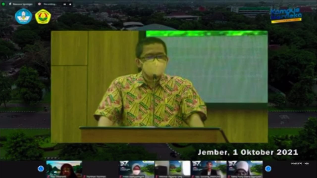 Dalam sambutannya, Rektor Universitas Jember menjelaskan tema Kampus Gotong Royong Untuk Indonesia Tangguh dan Tumbuh dipilih dengan menyesuaikan kondisi bangsa Indonesia saat ini yang masih dihadapkan pada usaha bersama menanggulangi pandemi Covid-19. Namun sebesar apapun masalah yang kita hadapi akan selesai dengan semangat gotong royong.