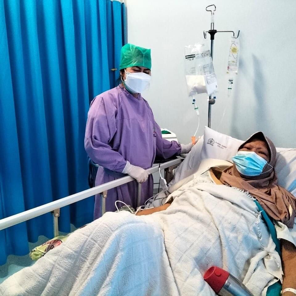 “Ibu Verawaty, saya mengantarkan bantuan dari Bapak Presiden. Bapak Presiden menitip salam dan mendoakan untuk kesembuhan Ibu Verawaty,” ucap Heru saat bertemu Verawaty di RS Dharmais pada Senin sore.