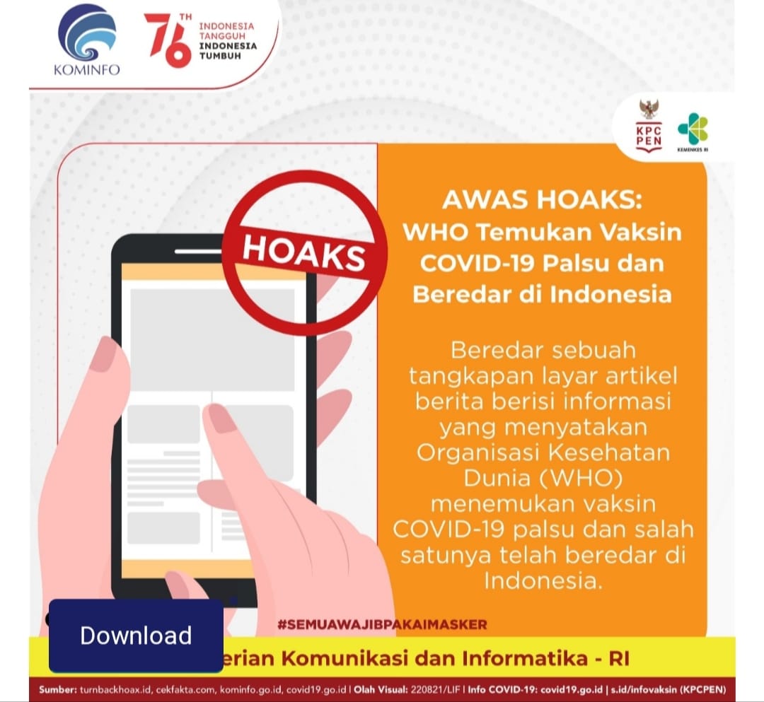 Hati-hati dengan informasi terkait kesehatan yang beredar tidak melalui kanal-kanal resmi, seperti postingan di media sosial atau broadcast pesan di aplikasi chatting.